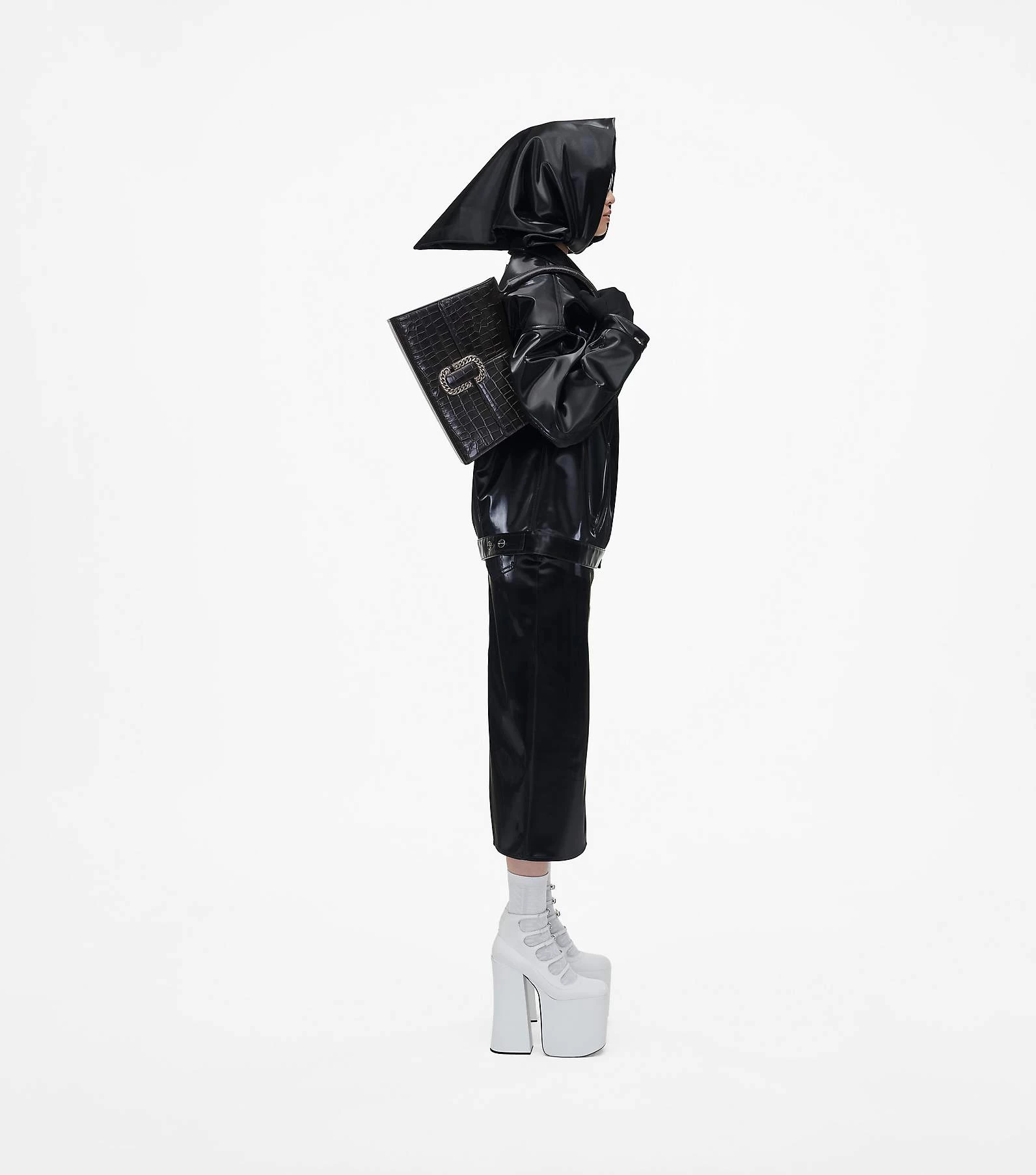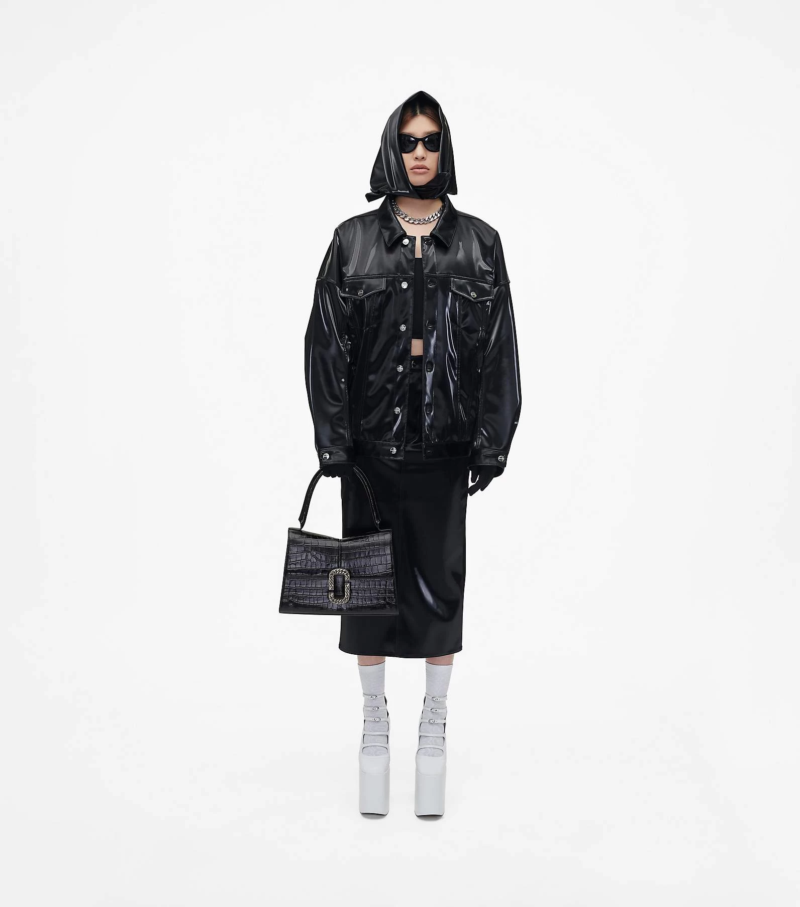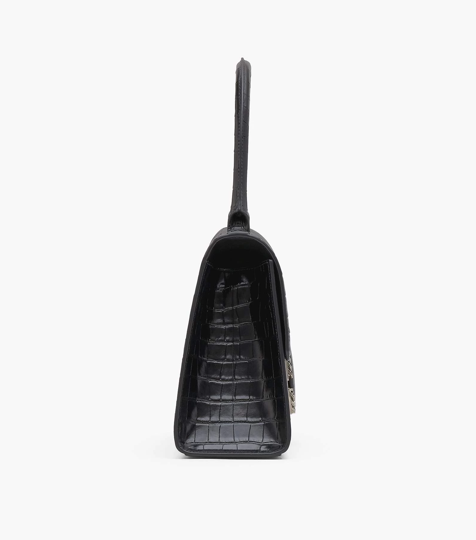 The runway-inspired St. Marc bag goes mega. This larger version of the polished top handle is crafted in glossy croc-embossed leather. It’s designed for a distinctive “M” shape and is crowned with chain link J Marc hardware at front. Inside, it includes an interior zip pocket and two card slots for easy organization. Wear yours either by carrying at the top handle or wear it over your shoulder for hands-free styling.