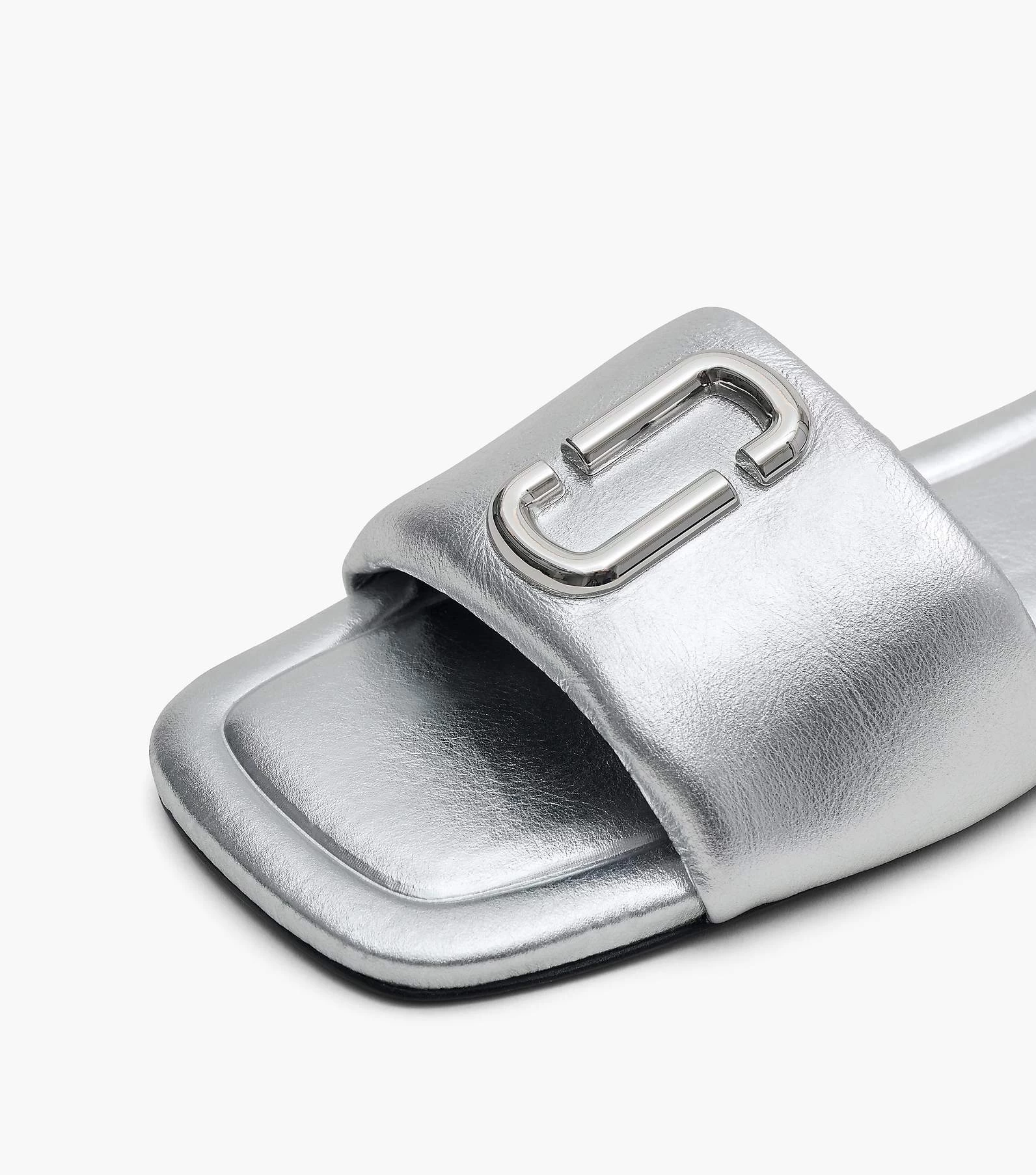 Our signature leather sandals are reimagined in the season’s striking metallic silver and stamped with our J Marc hardware at front.