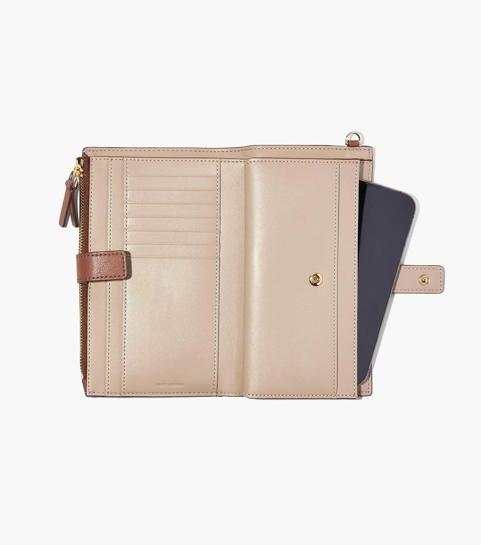 Designed in smooth leather, this classic wristlet is made to fit any sized phone and made with extra compartments to store your cash, cards, and coins with ease. It includes seven card slots, one bill sleeve, one phone compartment, three slip pockets, one exterior coin pouch, and a removable wristlet strap for your convenience. Style yours with the coordinating J Marc bag to complete the set.