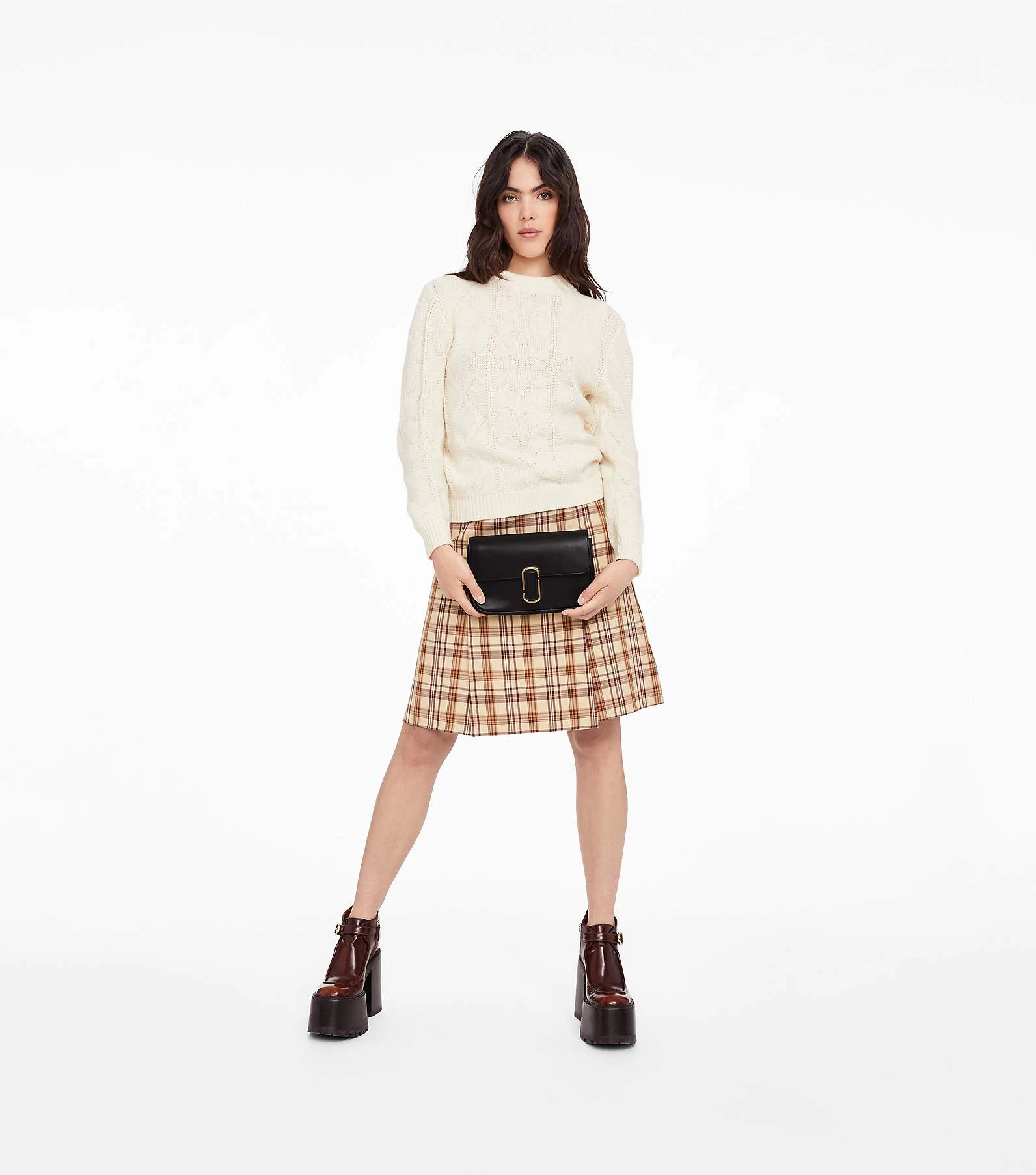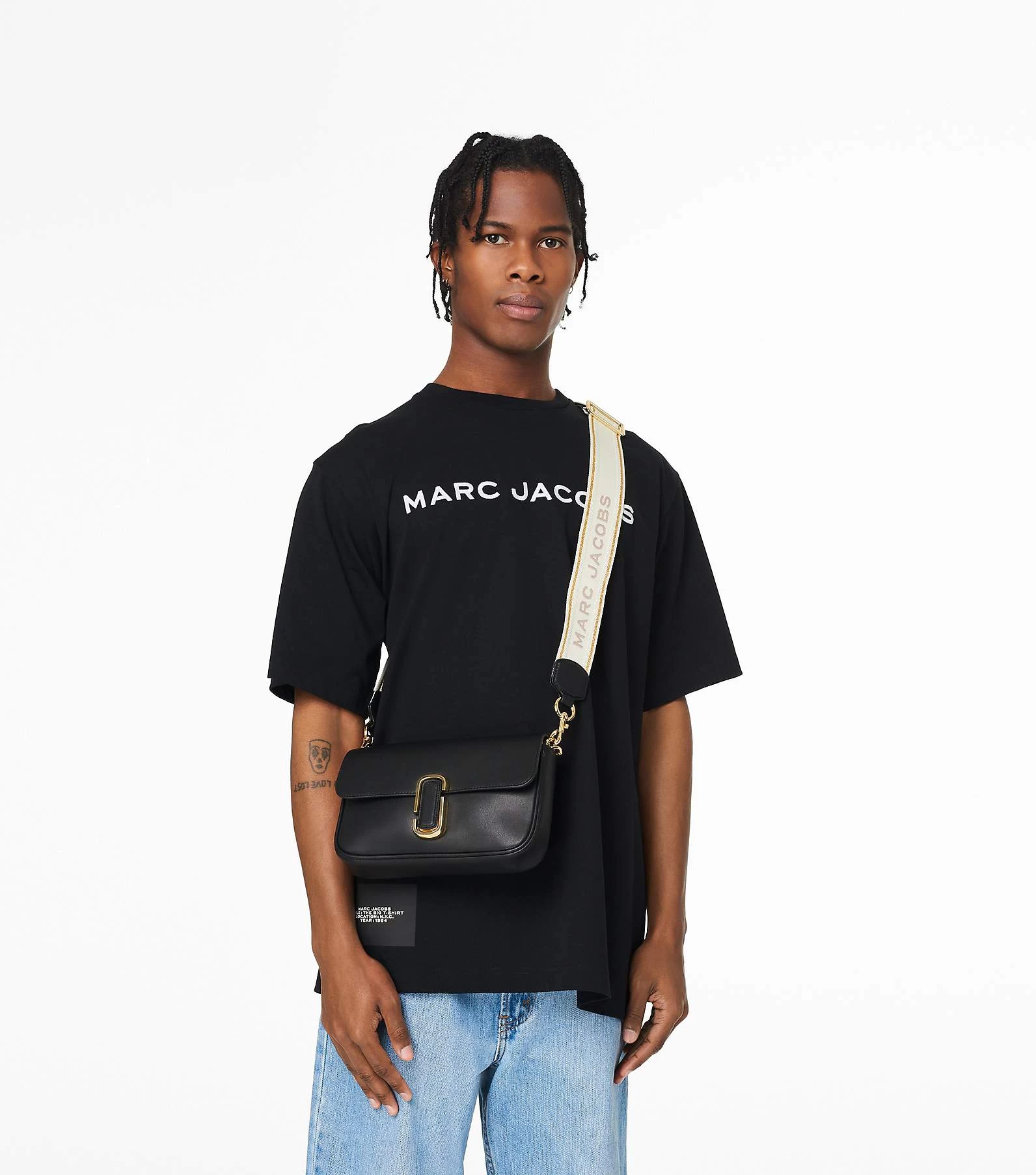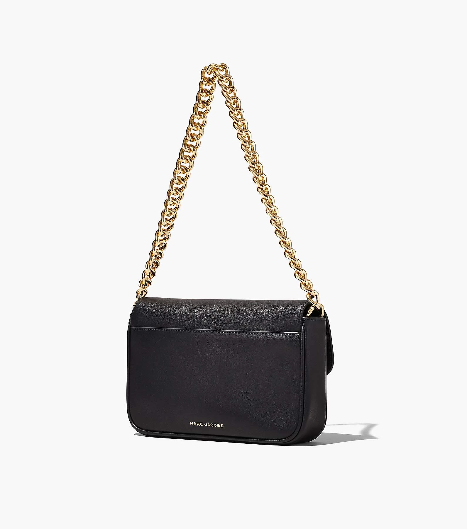 A shoulder bag crafted in smooth leather and sealed by the J Marc hardware. With three ways to wear, go from formal to casual by swapping the chain shoulder strap with the webbing crossbody strap, or carry it strapless as a clutch for a true evening moment.