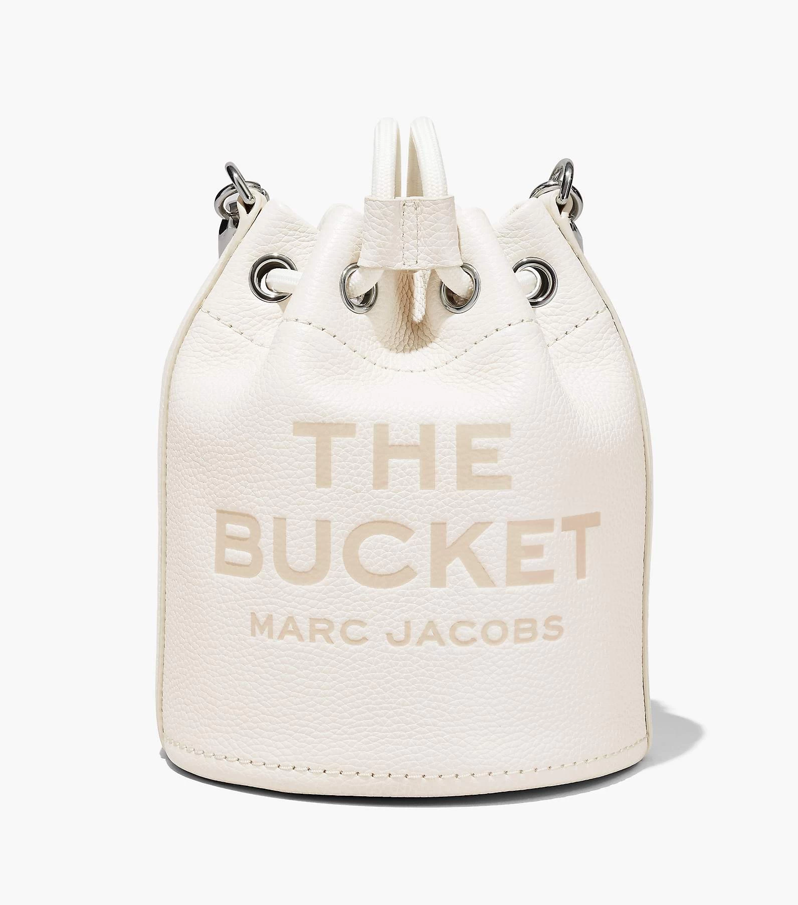 A coveted addition to our leathers is this bucket bag with branded embossing. The textured rope handle and drawstring are fastened by metallic hardware. Fitted with crossbody functionality to go handsfree, its construction also allows it to sit upright on it’s own while holding your contents in place.