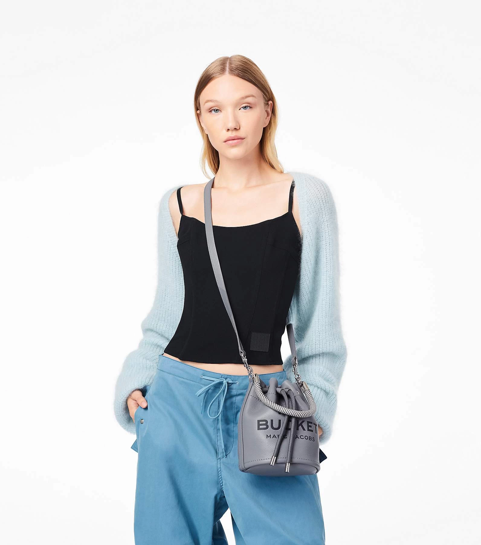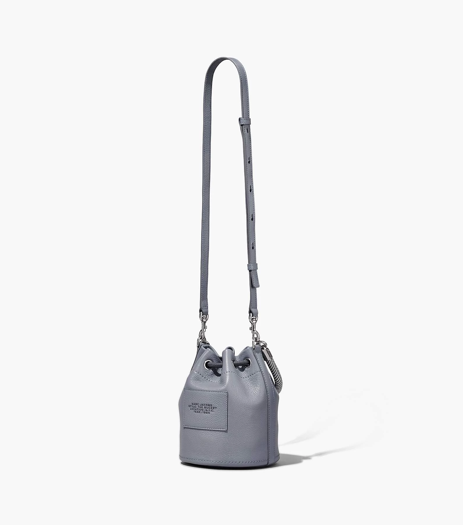 A coveted addition to our leathers is this bucket bag with branded embossing. The textured rope handle and drawstring are fastened by metallic hardware. Fitted with crossbody functionality to go handsfree, its construction also allows it to sit upright on it’s own while holding your contents in place.