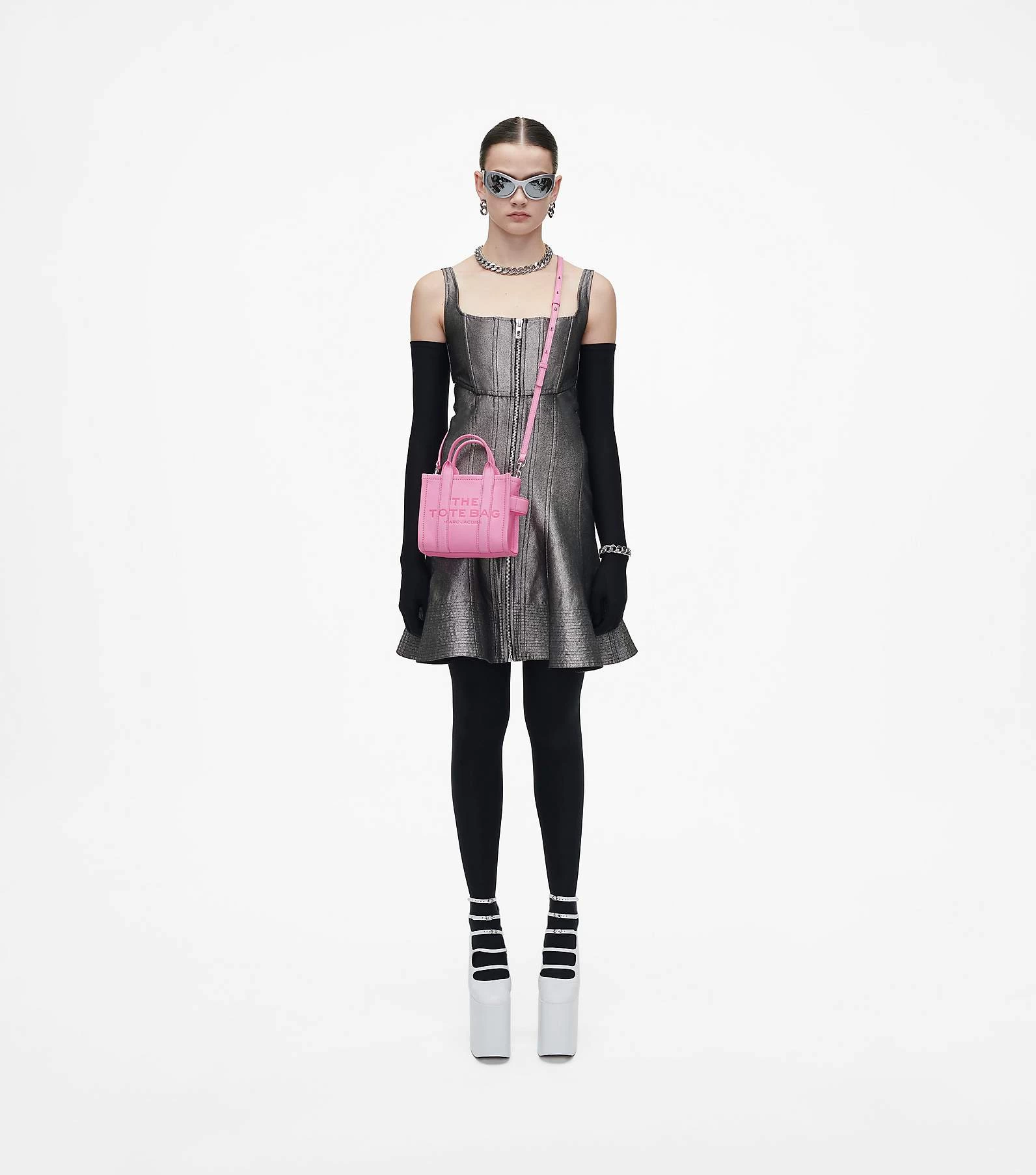 Marc Jacobs The Leather Mini Tote Bag FLURO CANDY PINK