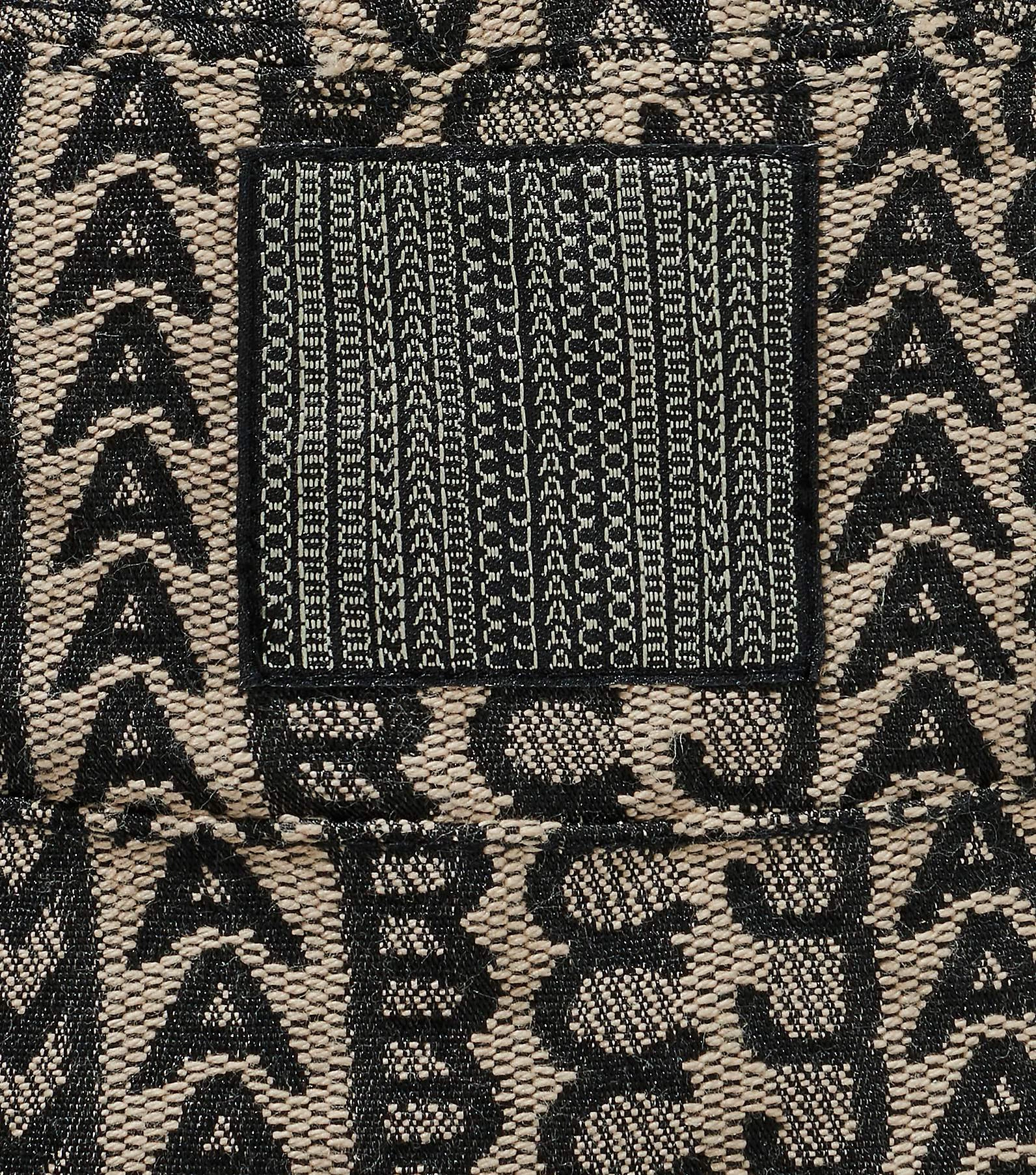 Micro-scale application of the allover monogram in jacquard canvas complimenting the painter jacket and pants.