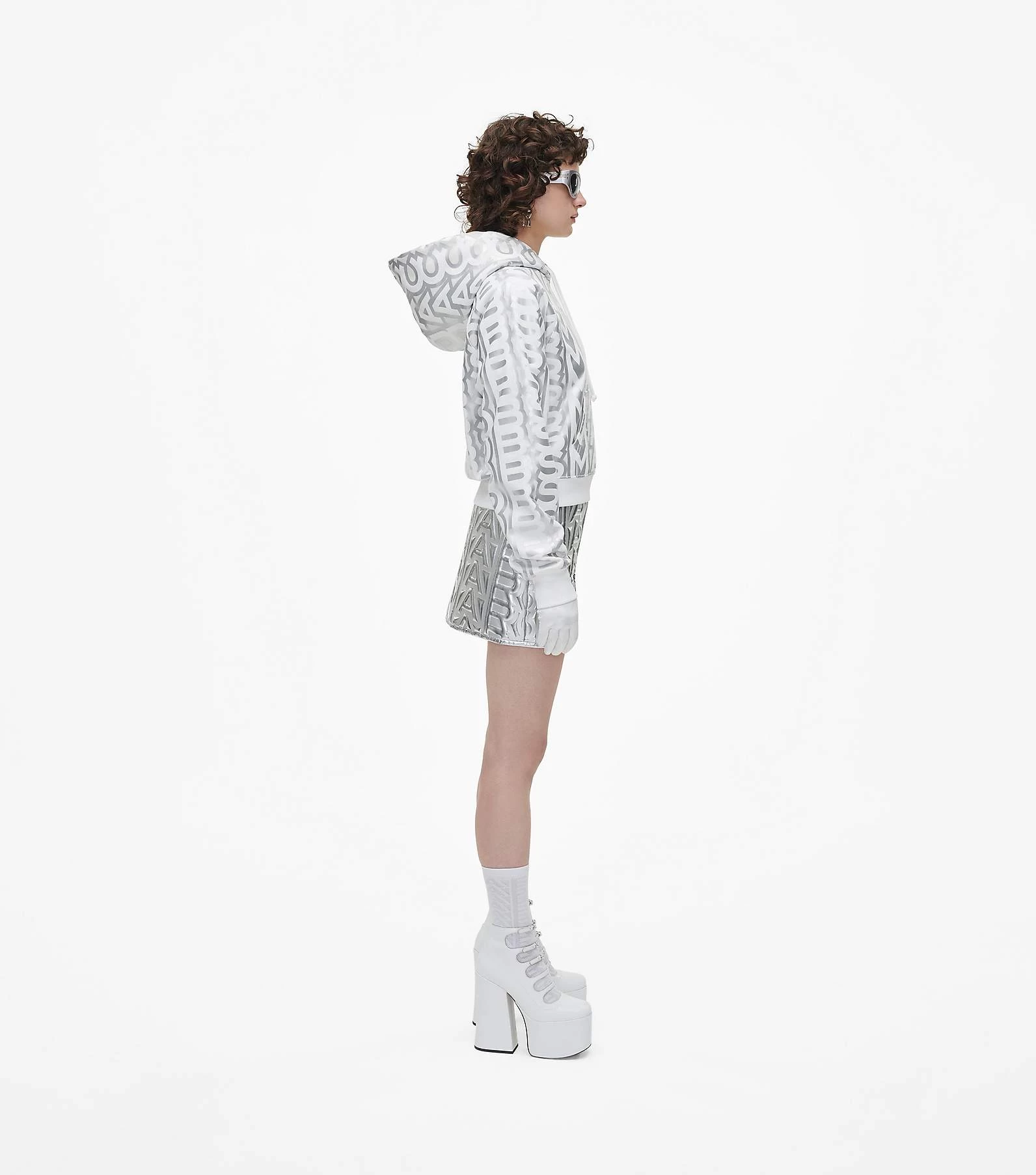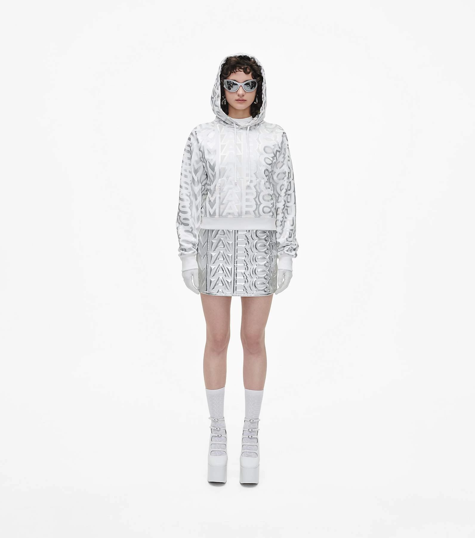 Drawstring at hood with monogram print inside