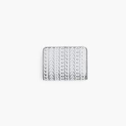 Striking metallic silver leather refreshes this monogram mini compact wallet. It seals with a snap closure and includes six card slots, one bill sleeve, four interior slip pockets, and one coin pouch with a double gusset for extra organization. Pair back with the matching monogram metallic silver handbags to complete the set.