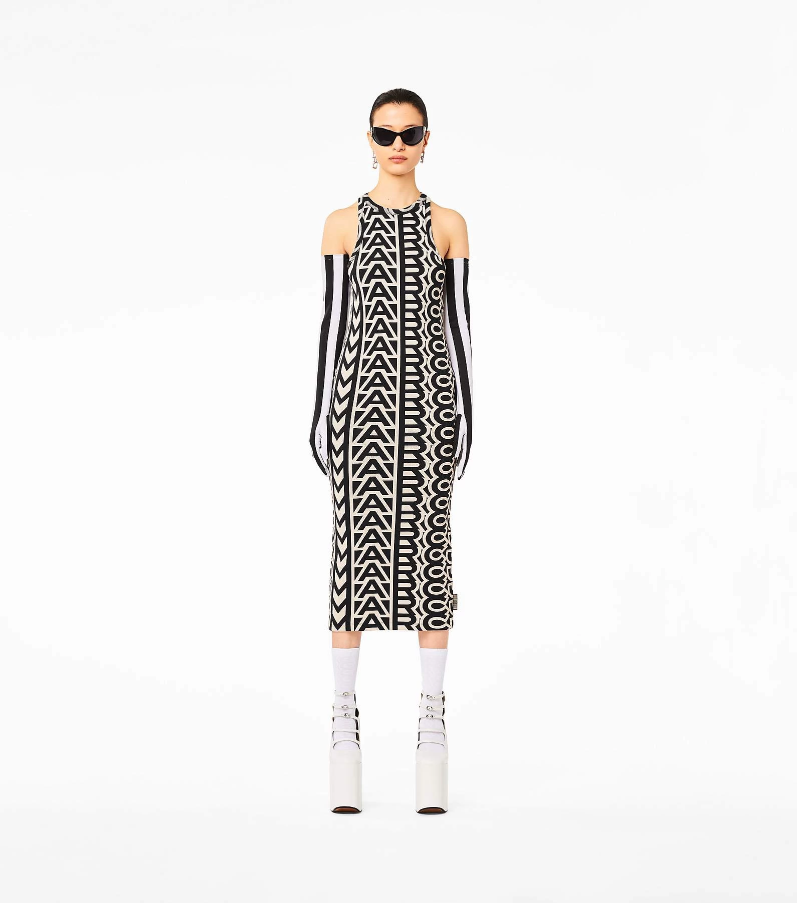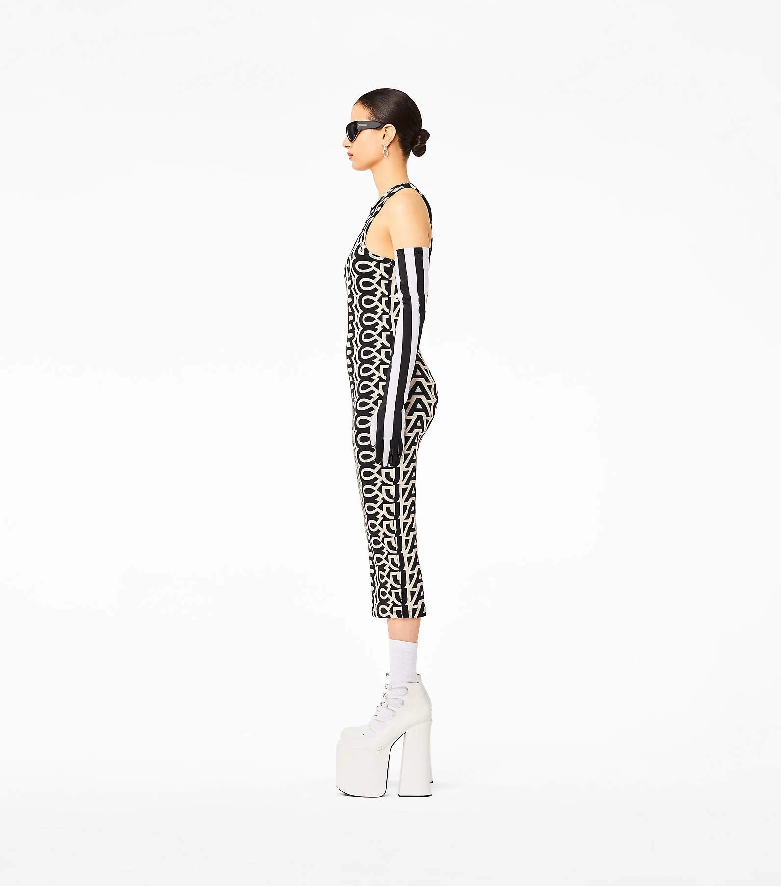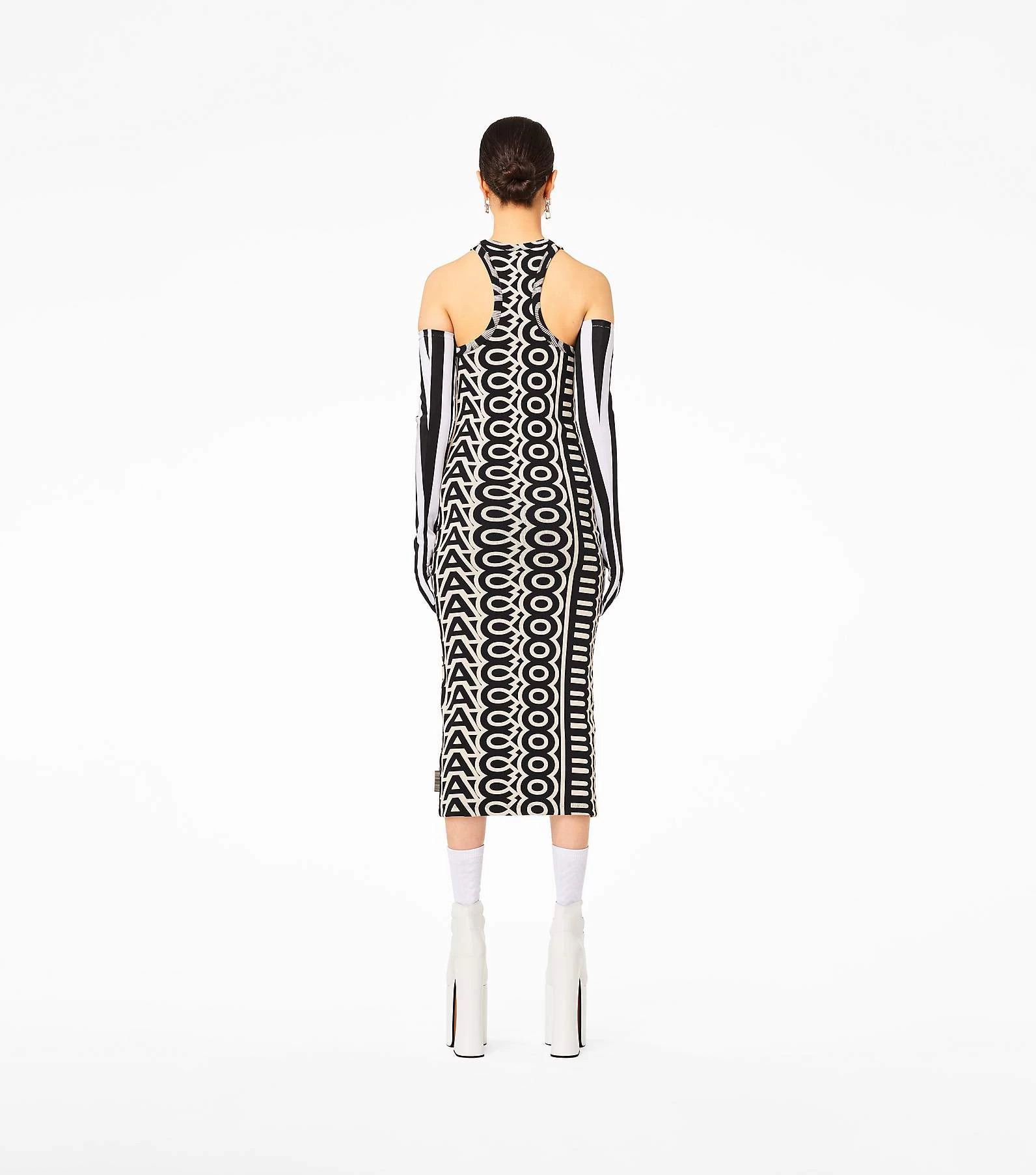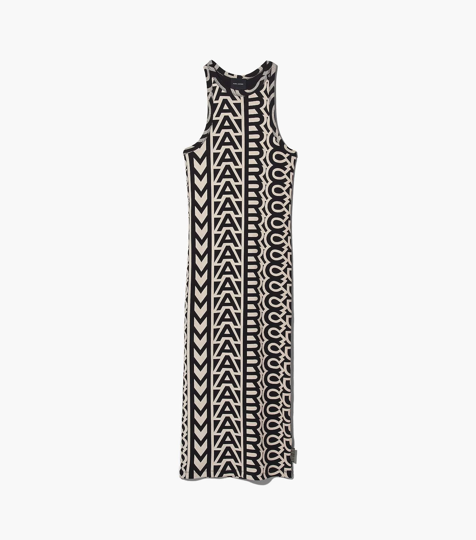 The monogram reaches grand scales. Fitted to move with you, this slim racerback tank dress is cut from a stretch rib fabric and printed with the all-over monogram.