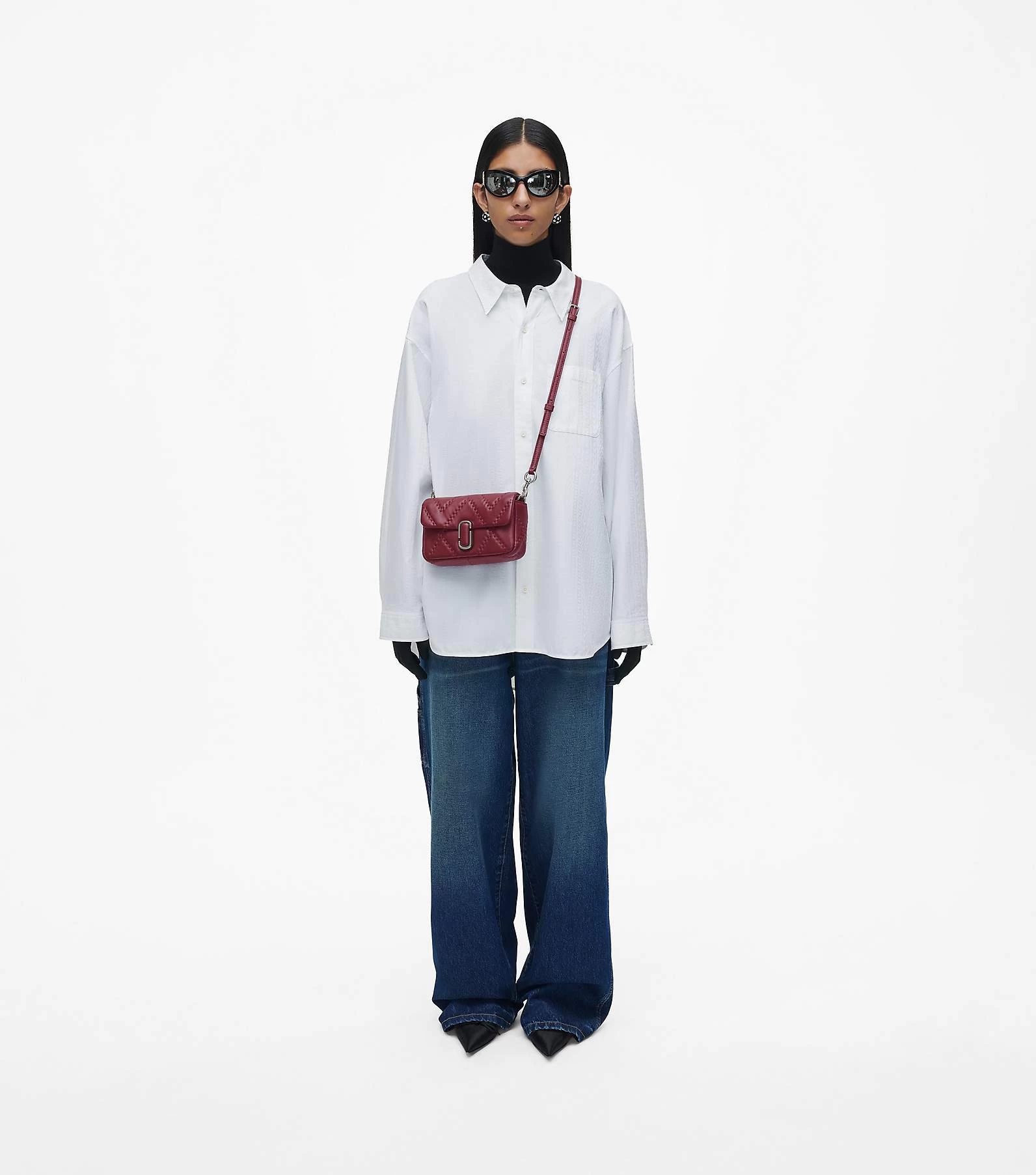 This mini new iteration of our signature J Marc Mini Bag features the same classic details as the original and is redesigned in a quilted, light-filled soft lamb leather for a plush feel. It secures with a magnetic snap closure and includes one interior zip pocket, three interior card slots, and one back slip pocket. With three ways to wear, go from formal to casual by swapping the chain shoulder strap with the leather crossbody strap, or carry it strapless as a clutch for a true evening moment.