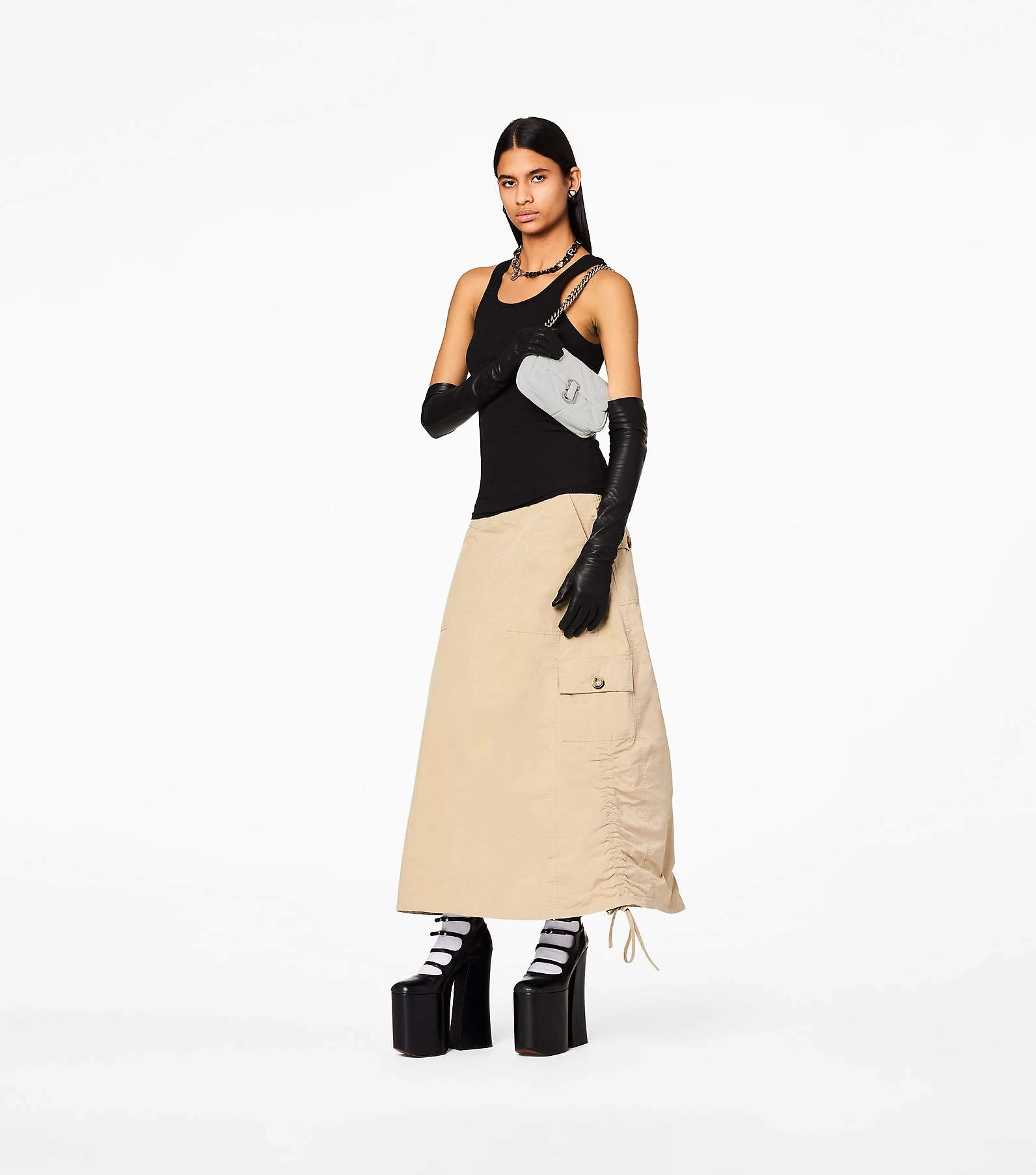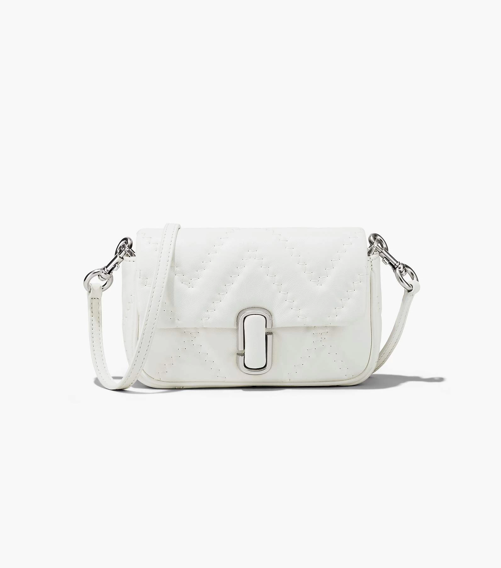 This mini new iteration of our signature J Marc Mini Bag features the same classic details as the original and is redesigned in a quilted, light-filled soft lamb leather for a plush feel. It secures with a magnetic snap closure and includes one interior zip pocket, three interior card slots, and one back slip pocket. With three ways to wear, go from formal to casual by swapping the chain shoulder strap with the leather crossbody strap, or carry it strapless as a clutch for a true evening moment.
