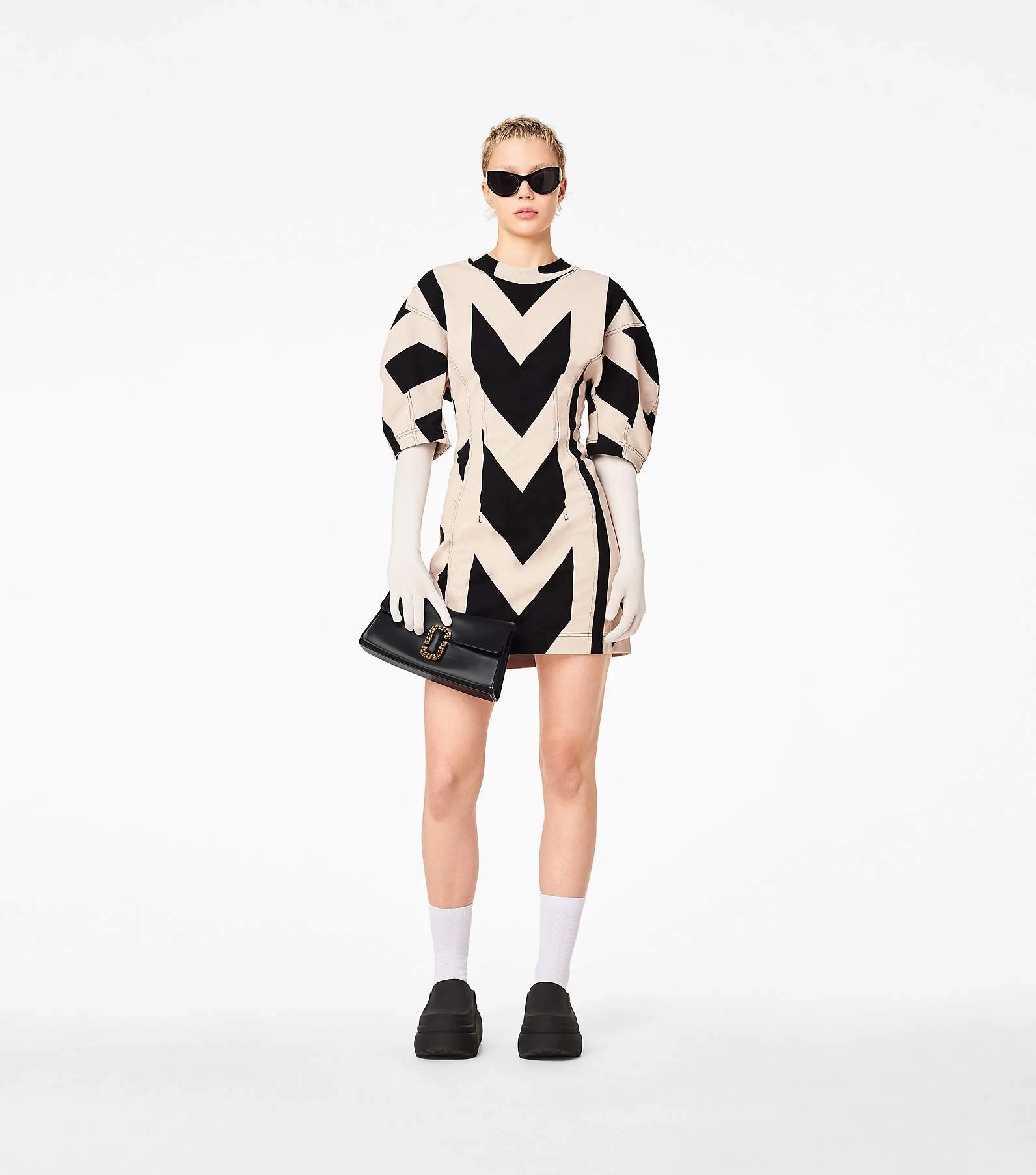 Inspired by the Fall 2016 runway, the St. Marc clutch is a striking iteration of the original St. Marc bag. Crafted from luxurious Italian leather, it’s designed with a distinctive “M” shape and sealed by a chain link J Marc hardware closure at front. Inside, it includes two card slots for easy organization. Carry with the removable chain shoulder strap or go strapless and wear as a clutch.