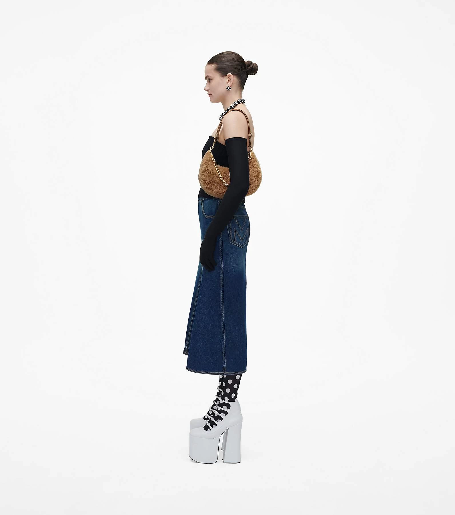 Cozy vibes with structural appeal. The Teddy Curve is a sleek, refined silhouette crafted from plush teddy fabric and punctuated with the J Marc hardware at front. It’s sealed by a top zip closure and includes one interior zip pocket. Style yours three ways: either with the chain shoulder strap, the leather shoulder strap, or extend the leather strap for a long shoulder length.